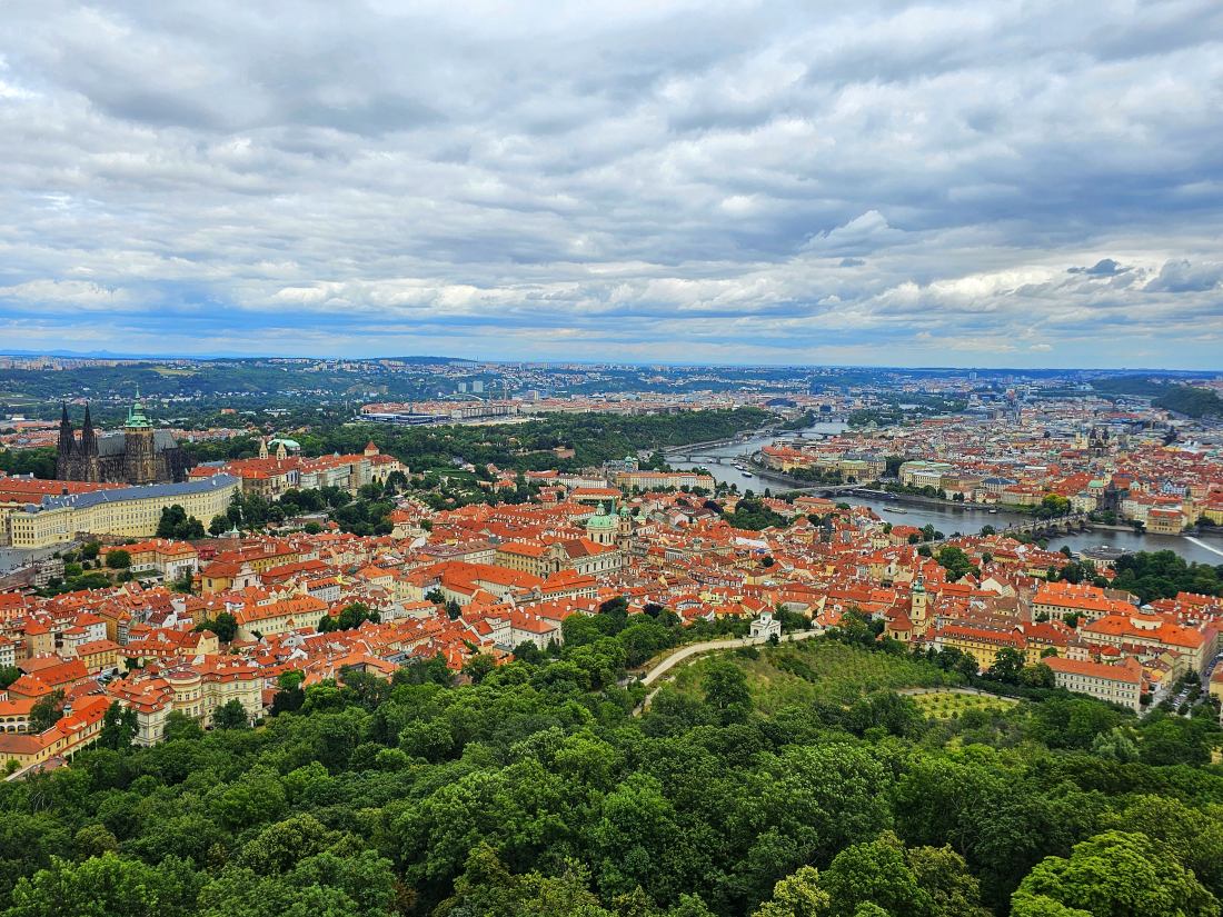 Elsőként a Vitkov dombon lévő kilátóponthoz mentünk, ami az óvároshoz közel emelkedik. A Křižíkova metróállomástól kb 10 perc séta, nem kell sokat trappolni felfelé. A panoráma szép, érdemes betenni a megnézendő listába. Ezenkívül Jan Žižka lovas szobra és Történeti Múzeum is itt áll.