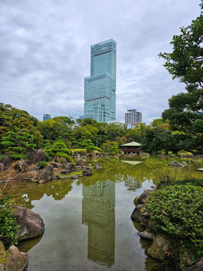 A tó mellett található Keitakuen-kertbe is bementem, a belépő 300 jen. Maga a kert egy átlagos japán kert, viszont nagyon jó kilátás van Oszaka legmagasabb épületére, az Abeno Harukas-ra. Egy negyed órás látogatást megér ez a kis kert.