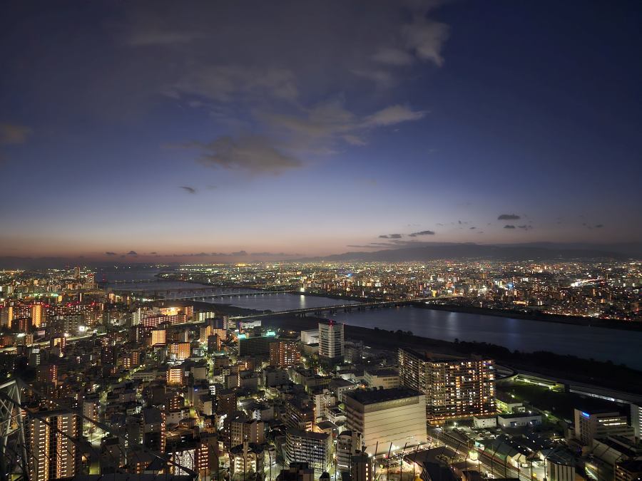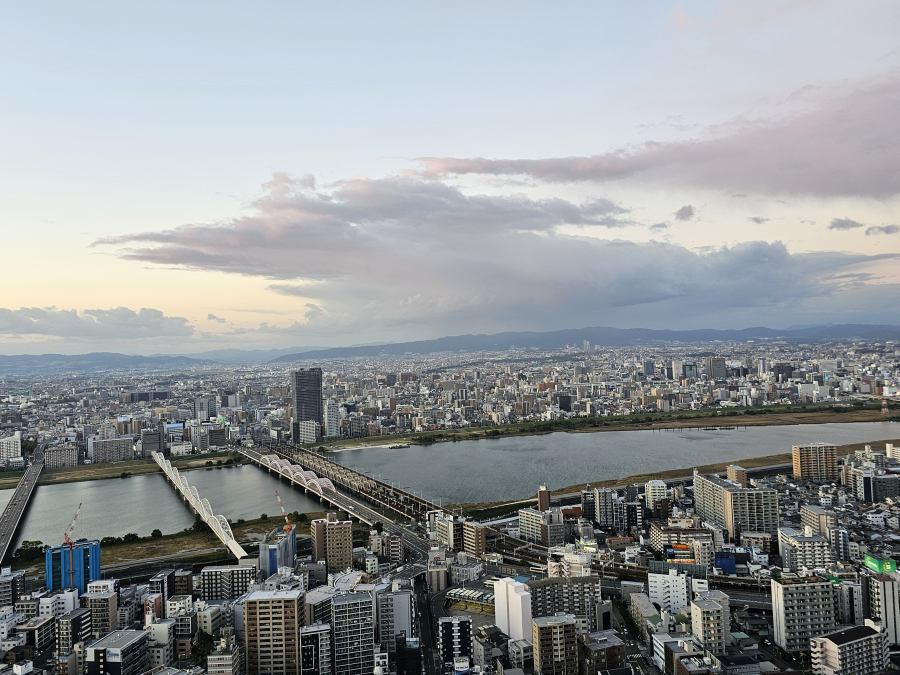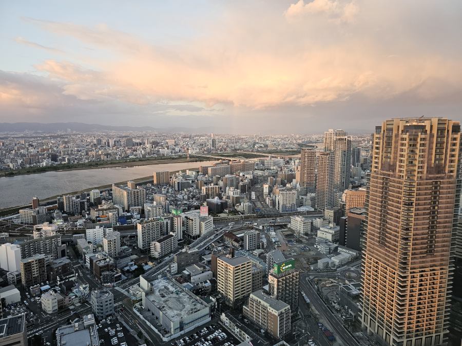 Az Umeda Sky Building kilátóhoz az épület 3. emeletére kell menni, itt kell sorba állni a lifthez. Ez visz fel a jegypénztárhoz, ahol az online vett jegyet kell érvényesíteni. Ezután mozgólépcsővel jutunk fel a 40. emeletre és a tetőteraszra. Utóbbi nyitott, így csodás képeket lehet minden irányba készíteni. Pont elcsíptem a naplementét, de este kivilágítva szerintem még szebb az egész város. Kihagyhatatlan program, ha Oszakában vagytok!