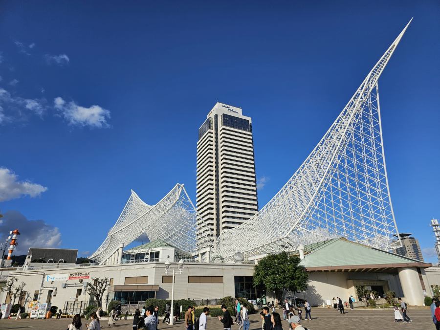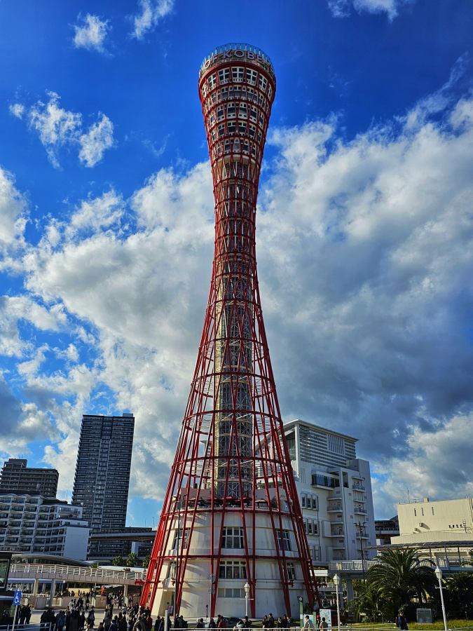 Következő megállóm a part menti Meriken Park volt. Itt áll Kobe jelképe, a Kobe Port Tower. A különleges kialakítású torony egyben kilátó is. Ide nem mentem fel, mert a Vénusz-hídnál szebb kilátás úgy sincs. Másik feltűnő a Tengerészeti Múzeum, amelynek épülete egy hajóra emlékeztet.