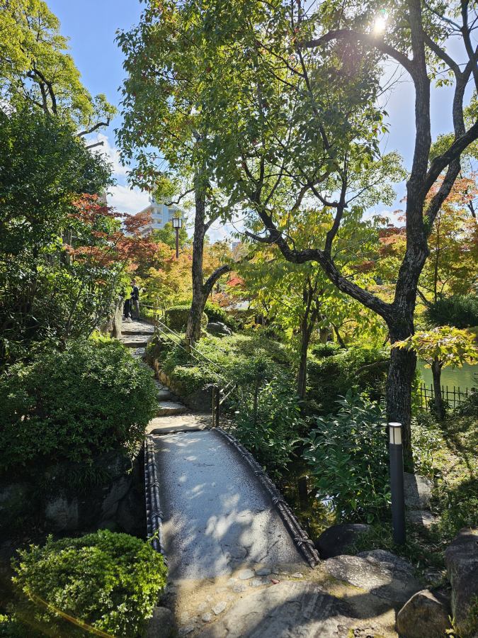 Kb 15 perc lefelé sétával jutottam le a Sorakuen kerthez. Ez Kobe legnagyobb kertje és ingyenes. Mivel ez volt az első kert, ahol voltam a japán út során, így legalább fél órát eltöltöttem. Nagyon szép, érdemes bejárni és élvezni a vízben lévő köveken való átugrálást. 🙂